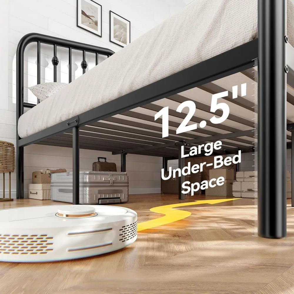 14 Inch Queen Bed Frame, Sturdy Rustic Metal Bed Frame Queen Size, Queen Bed Frame with Headboard and 12.5" Under