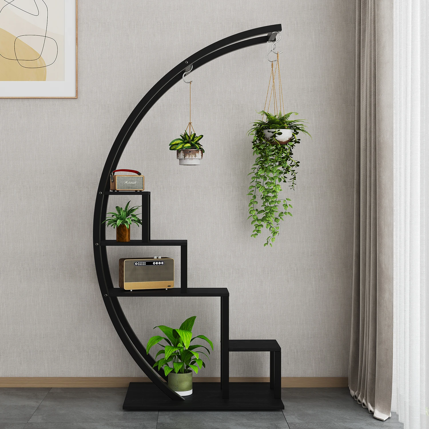 🌺Unique Half Moon Design: The plant rack showcases a graceful half-moon shape, maximizing your space and perfectly decorating living rooms, covered patios, balconies, bedrooms, dining areas, and more.