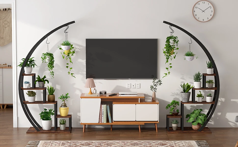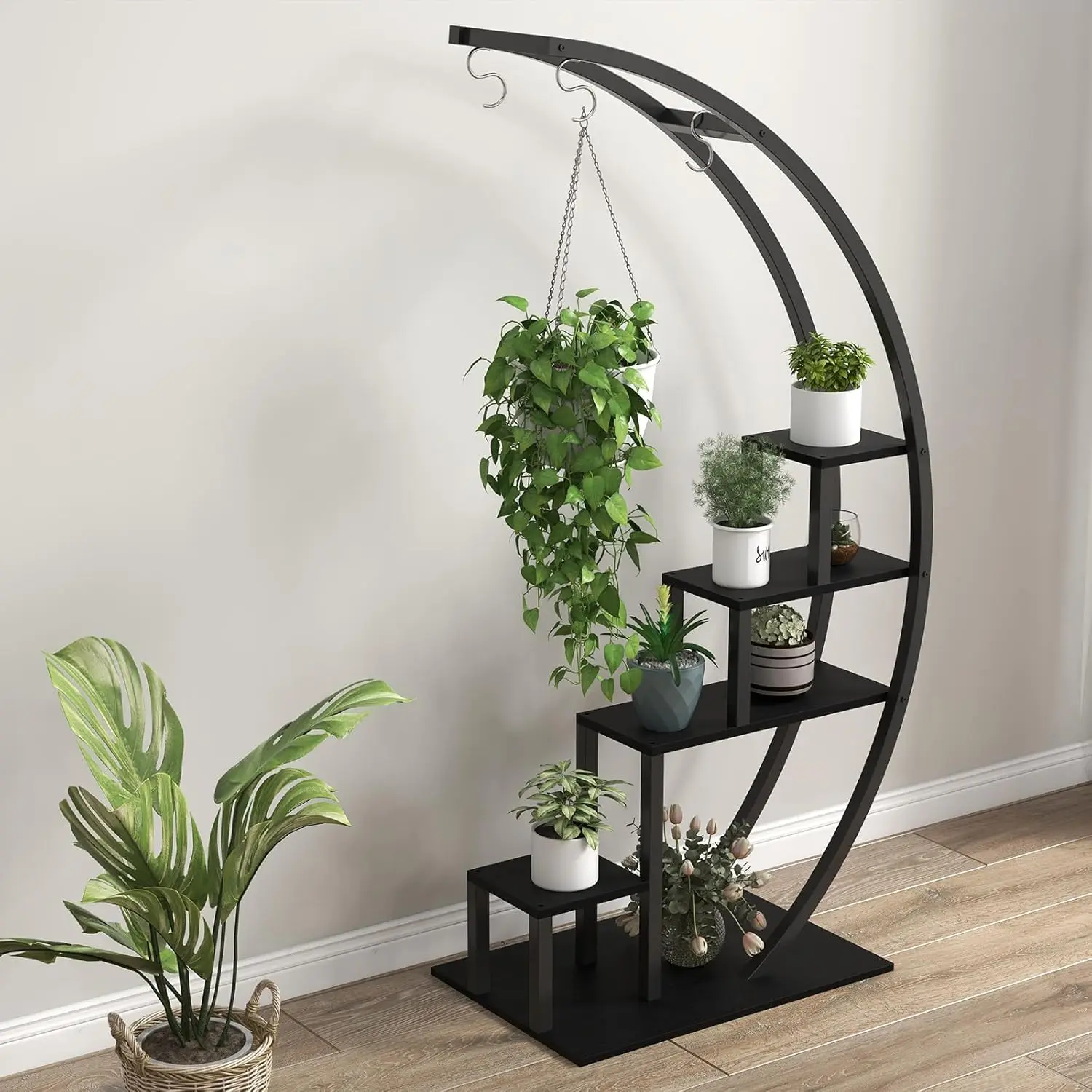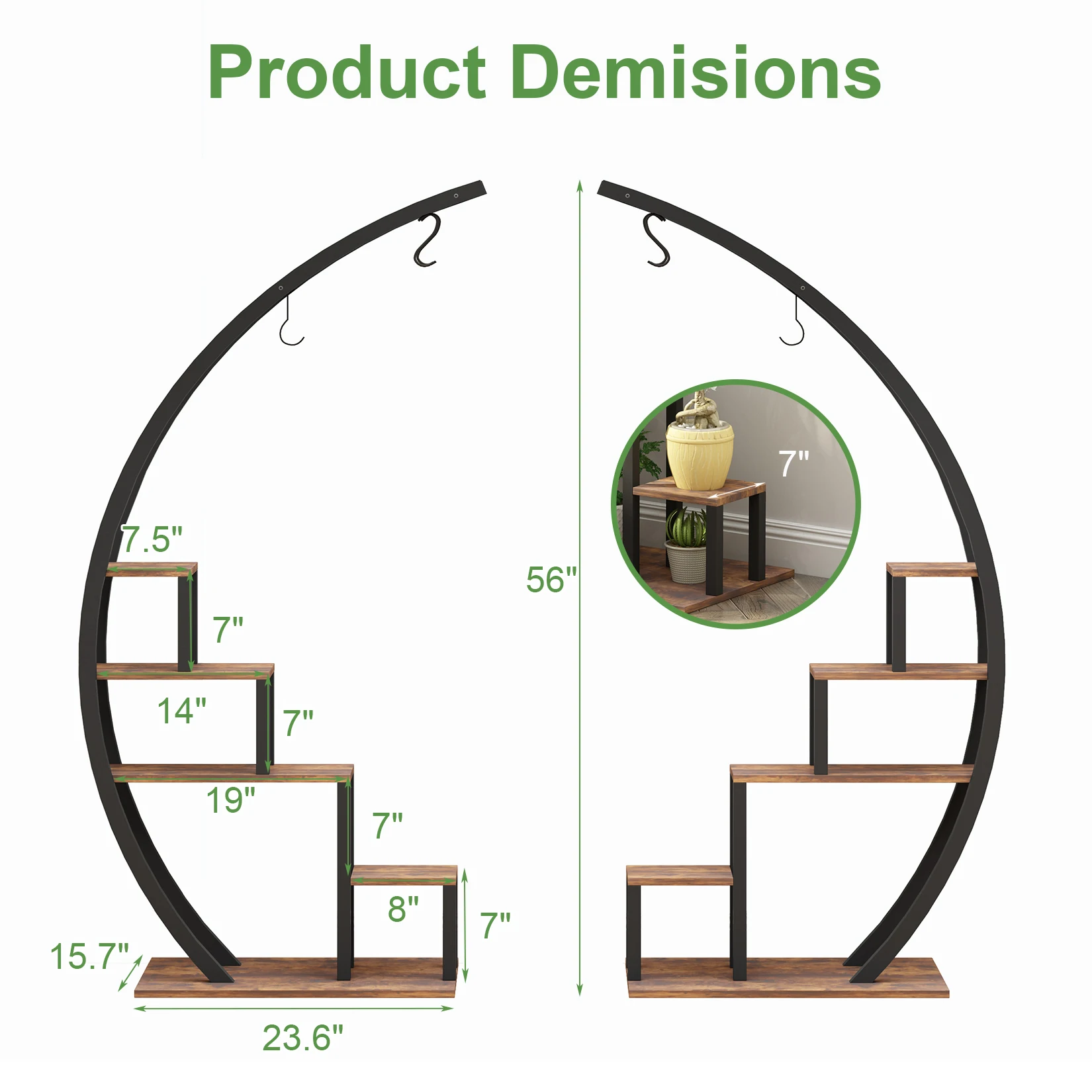 🌺Sturdy Structure Materials: The metal plant stands is supported by a heavy-duty steel frame with powder-coated, providing excellent rust resistance and durability. The arched plant stand shelves are crafted from MDF board, moisture-resistant and easy to clean. It comes with anti-tip protection.