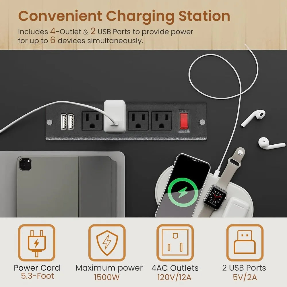 • 【Multifunctional】Home office desks equipped with 4 AC outlets and 2 PowerIQ-enabled USB charging ports with a switch to provide power for up to 6 devices simultaneously. The monitor stand can easily raise the monitor to a suitable height, reducing the tension and pain of the back and neck. The keyboard tray is ideal for a 108-key or 87-key keyboard + mouse, which can free up more desktop space. CPU stand protects the host from moisture and dust.