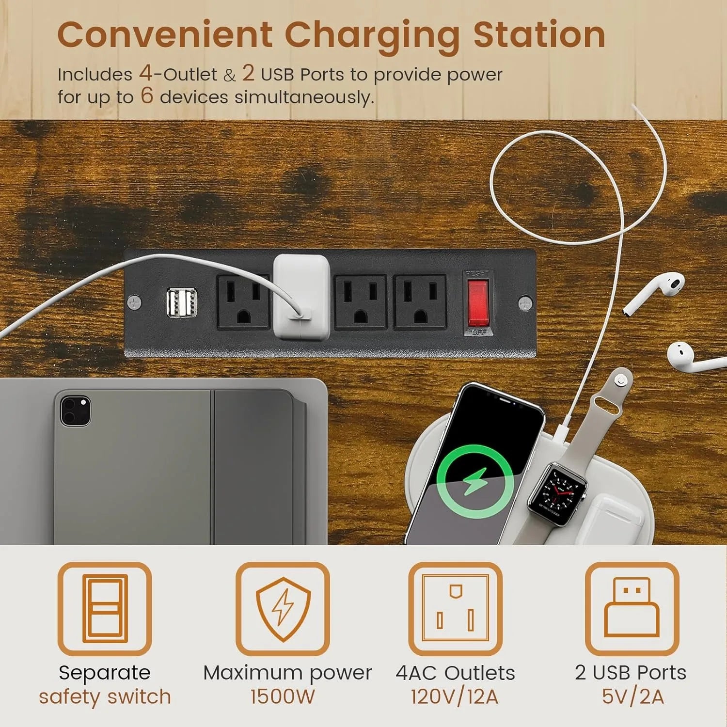 - 【Charging Port】Our charging station includes 4-Outlet & 2 USB Ports to provide power for up to 6 devices simultaneously. Also includes an on-off switch, thanks to the on-off switch, one-button power off to ensure safe electricity use, which strengthens security. Power outlet of desk with storage allows you to charge cell phones, tablets, notebook, etc.
