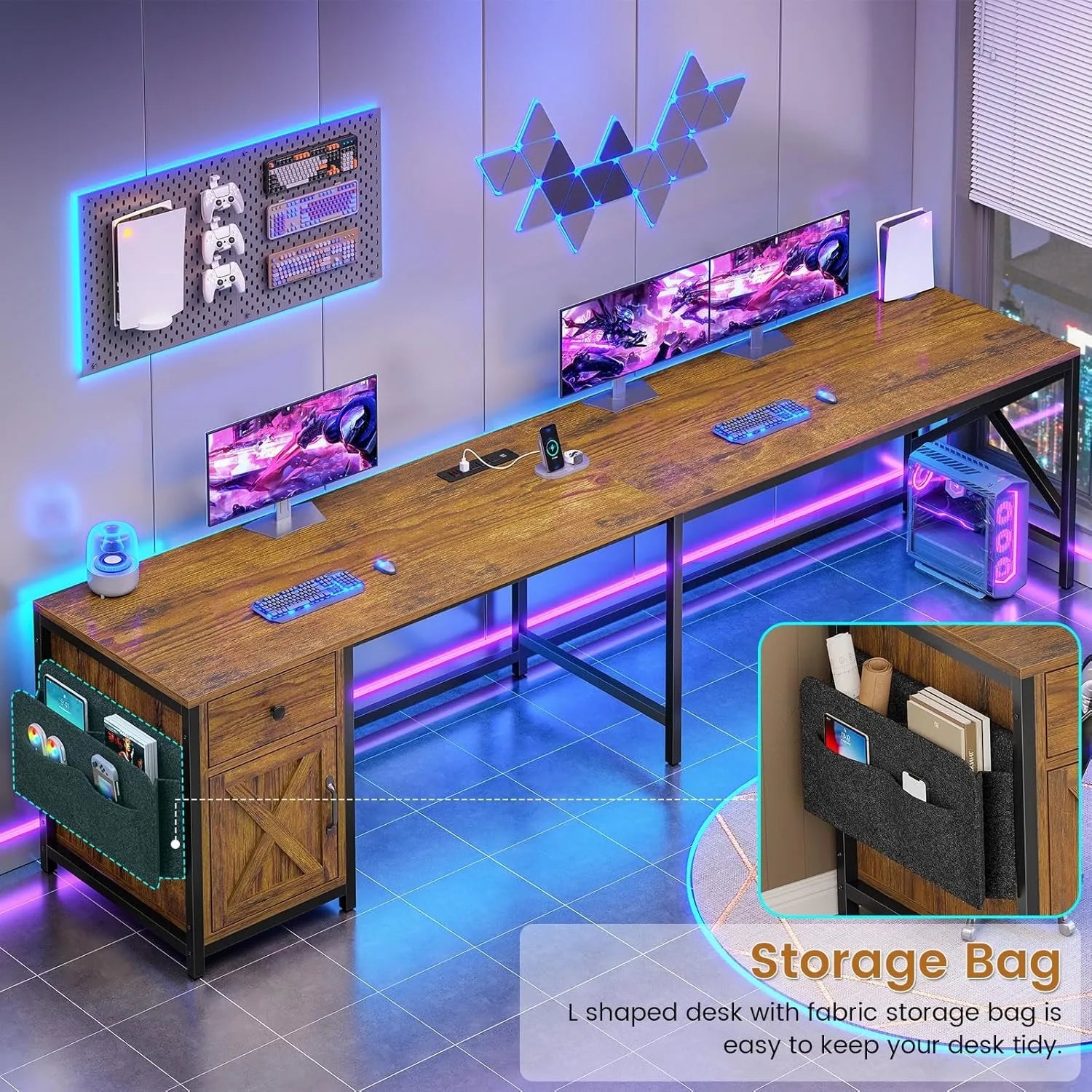 - 【L Shaped Desk or Long Two Person Desk】86.6 inch long 2 person desk or 63" x 43.3" corner desk. This office desk with storage can easily hold your computer, monitor, keyboard, files, books for home office. 86.6" two person desk can hold two-person studying or writing no interference. This L shaped desk can help you maximize study and writing efficiency.
