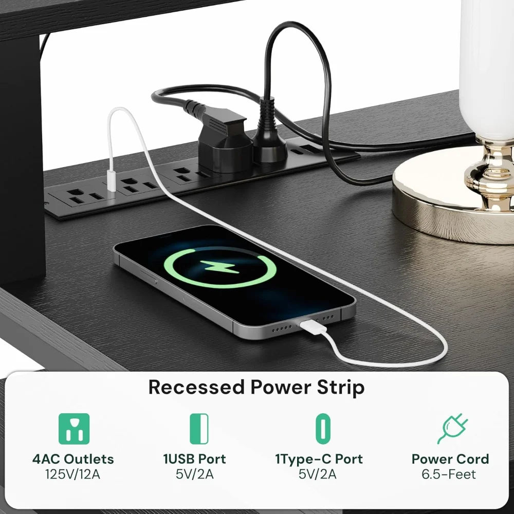 - Built-in Power Hub & Charging Station: Equipped with 4 AC outlets, 1 USB port, and 1 Type-C port (6.5ft cord), this corner desk with storage keeps your devices powered. No more crawling under the desk to charge laptops, phones, or gaming gear