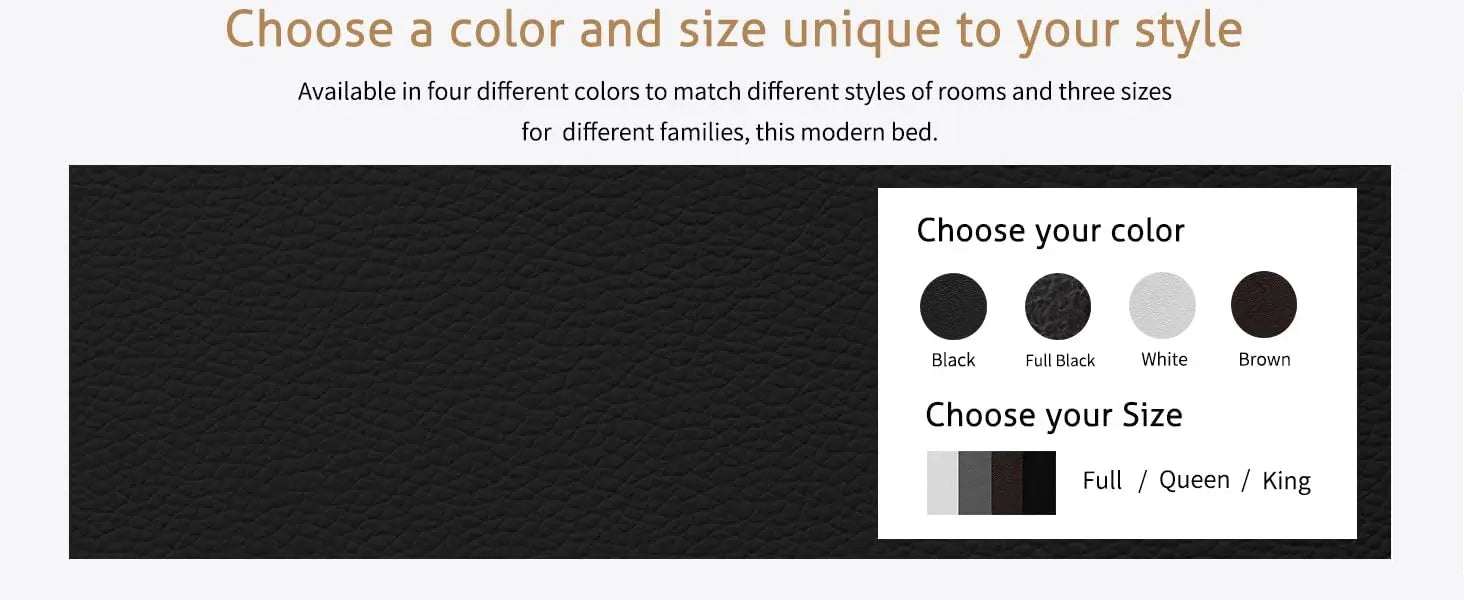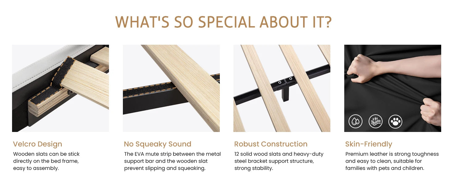 - Deluxe Upholstered Bed: The sleigh bed is fully wrapped in 100% premium faux leather filled with high-density natural sponges with good air permeability. A perfect combination of lavishness and comfort