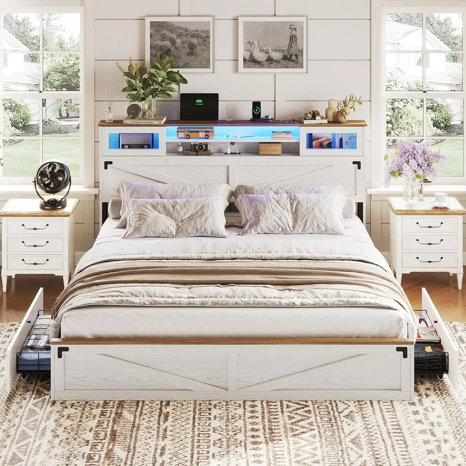 Special Feature | No Box Spring Needed, Storage Headboard with Sliding Wire Mesh Door, RGB LED Lights, Charging Station with AC Outlets & USB Ports, 2 Under Bed Storage DrawersNo Box Spring Needed, Storage Headboard with Sliding Wire Mesh Door... See more |