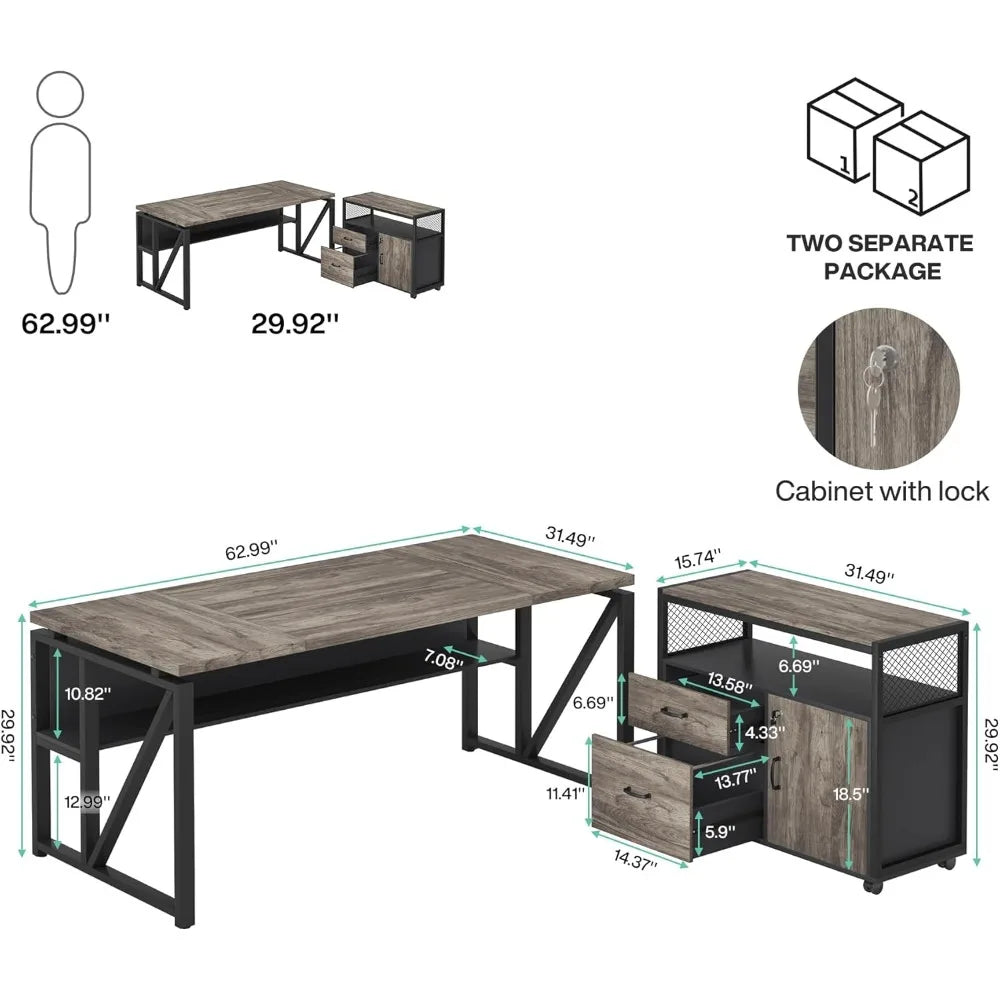 - 【Freestanding 2 piece Home Offices Furniture Set】: 63 inches computer desk and 32 inch filing cabinet, you will love the versatility of having 2 pieces that can be put together for an l-shaped desk to extend your workspace or separate for a different look.
