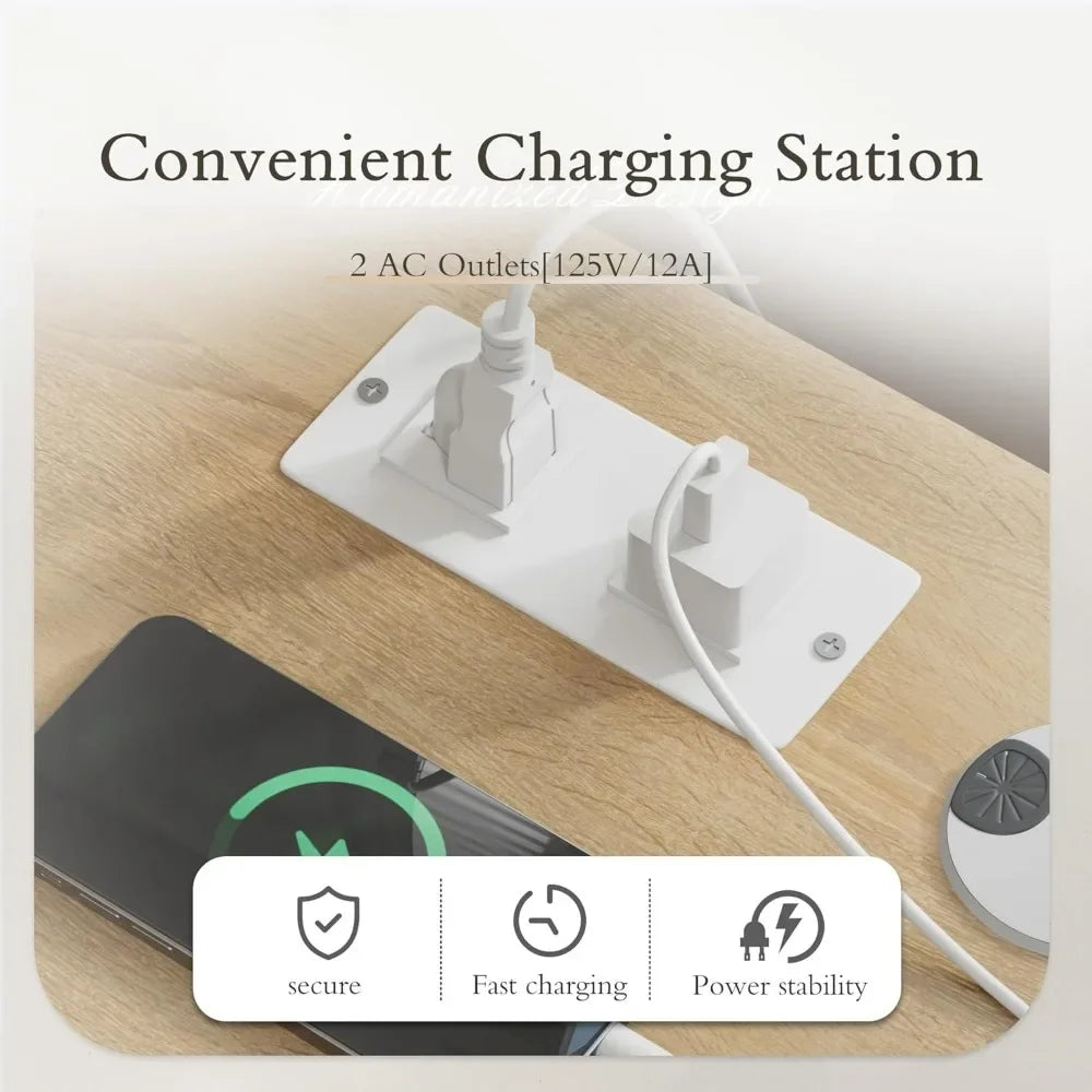 [Convenient Charging Station] The corner desk features convenient power outlets with 2 AC outlets, which you can easily get the power strip within reach of your hands to charge your phones, laptop, printer, and other office devices. Make an easier and more convenient workstation!