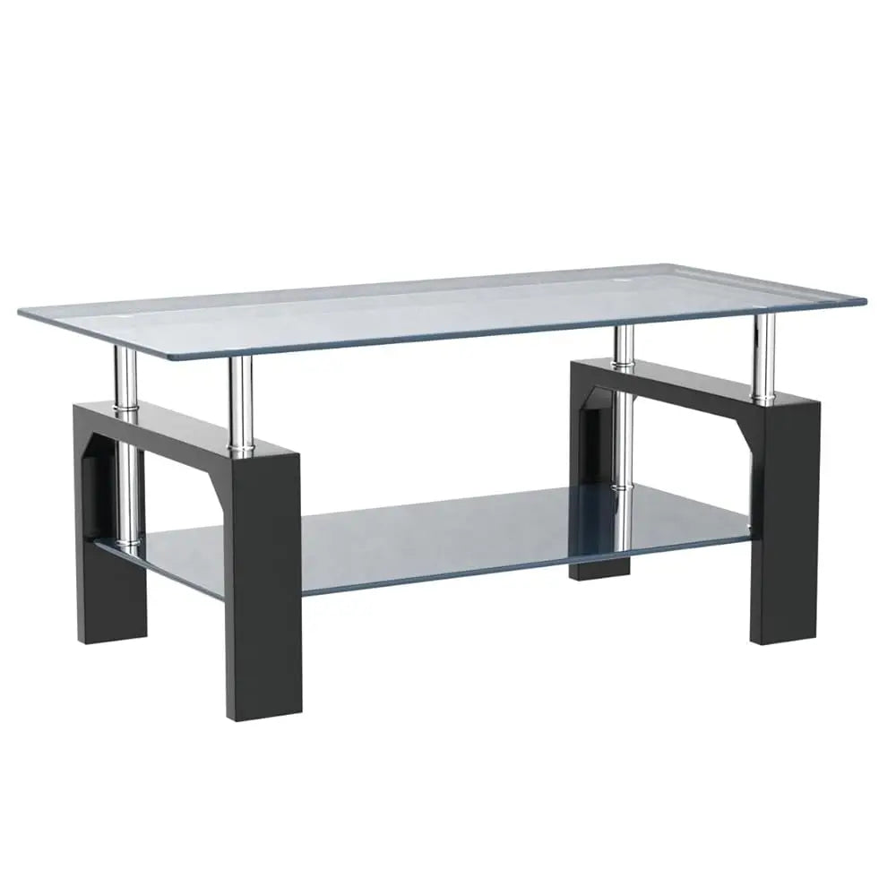 Living Room Rec Coffee Table, Tea Table Suitable For Waiting Room, Modern Side Coffee Table With Wooden Leg, Glass Tabletop
