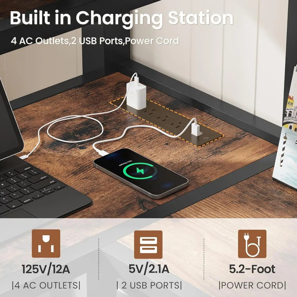 - 【Power at Your Fingertips】: Includes an integrated charging station boasting 4 AC outlets and 2 USB ports, ensuring your electronic are always charged.