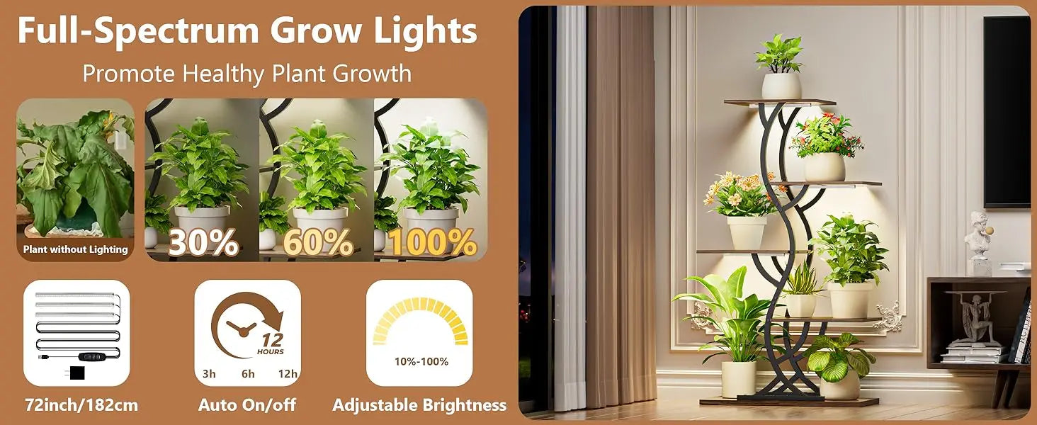 Indoor 5-Tiered Metal Plant Shelf with Grow Lights Indoor Plants