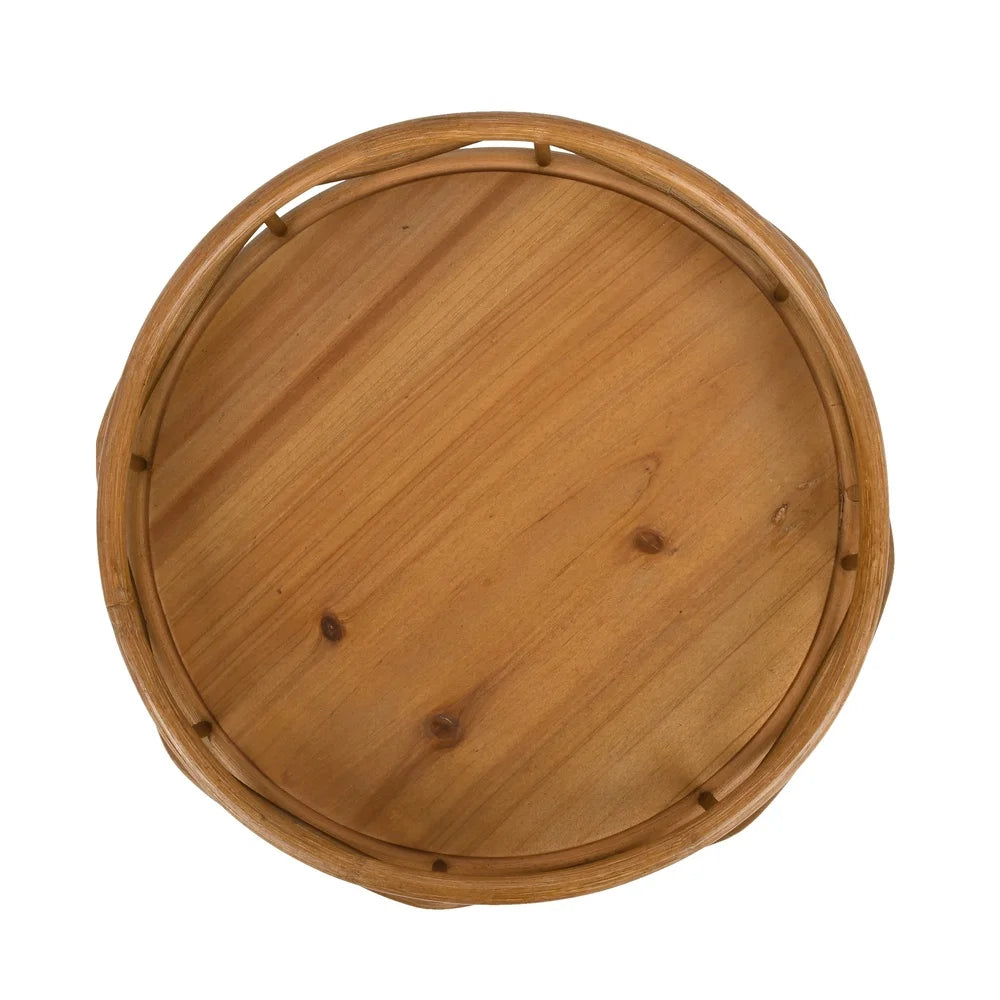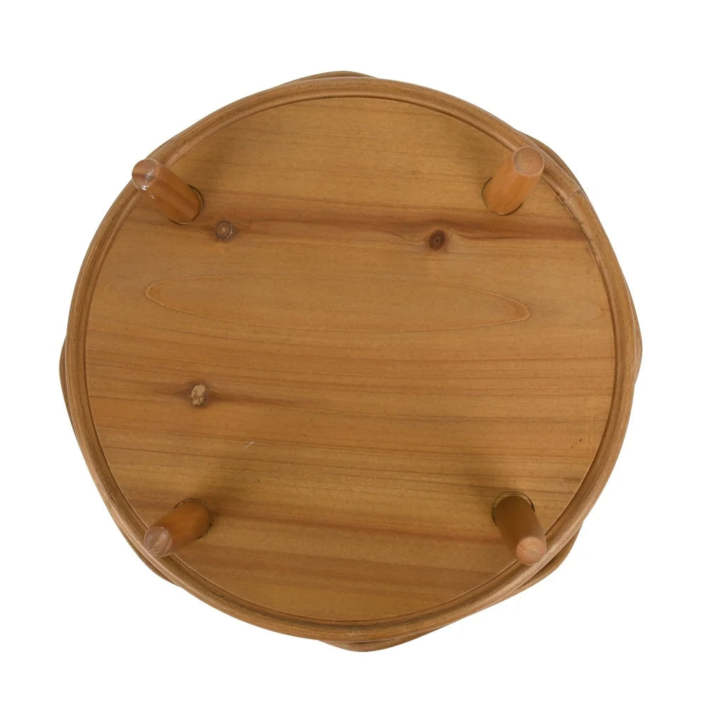 Rustic Rattan Plant Stand Round Weather Resistant Indoor Outdoor Display Holder Wooden Flower Pot Stand Home Garden Décor