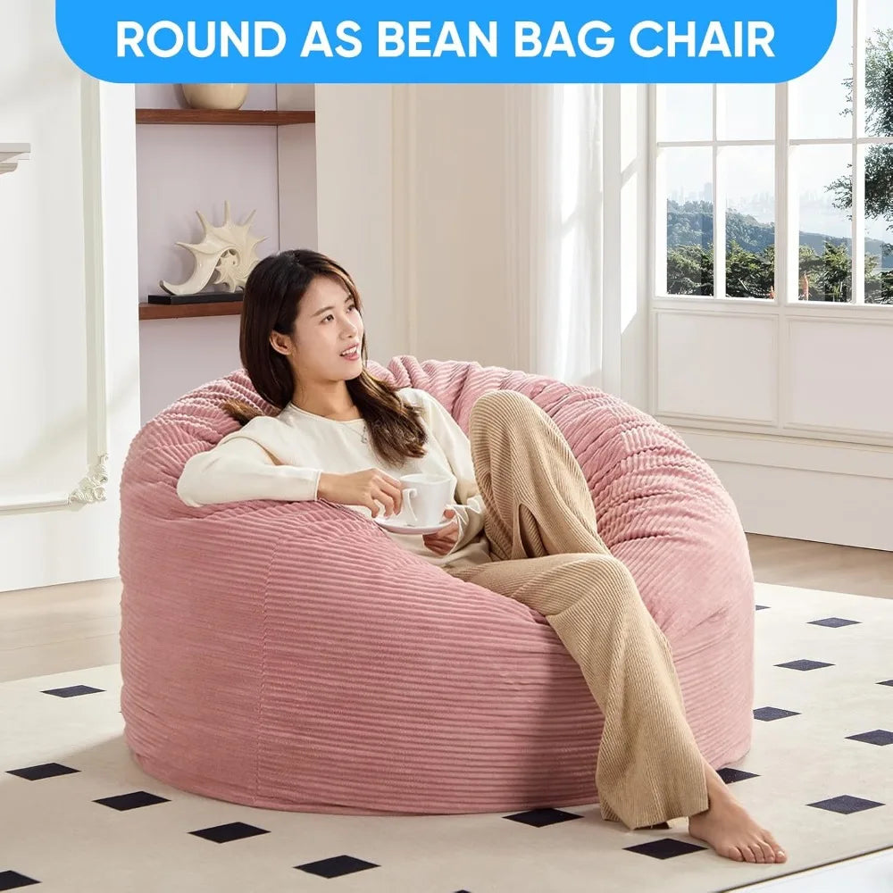 Striped Style Giant Bean Bag Chair Bed for Adults, Convertible Adult Beanbag from Lazy Chair to Floor Mattress, Large Round Bea